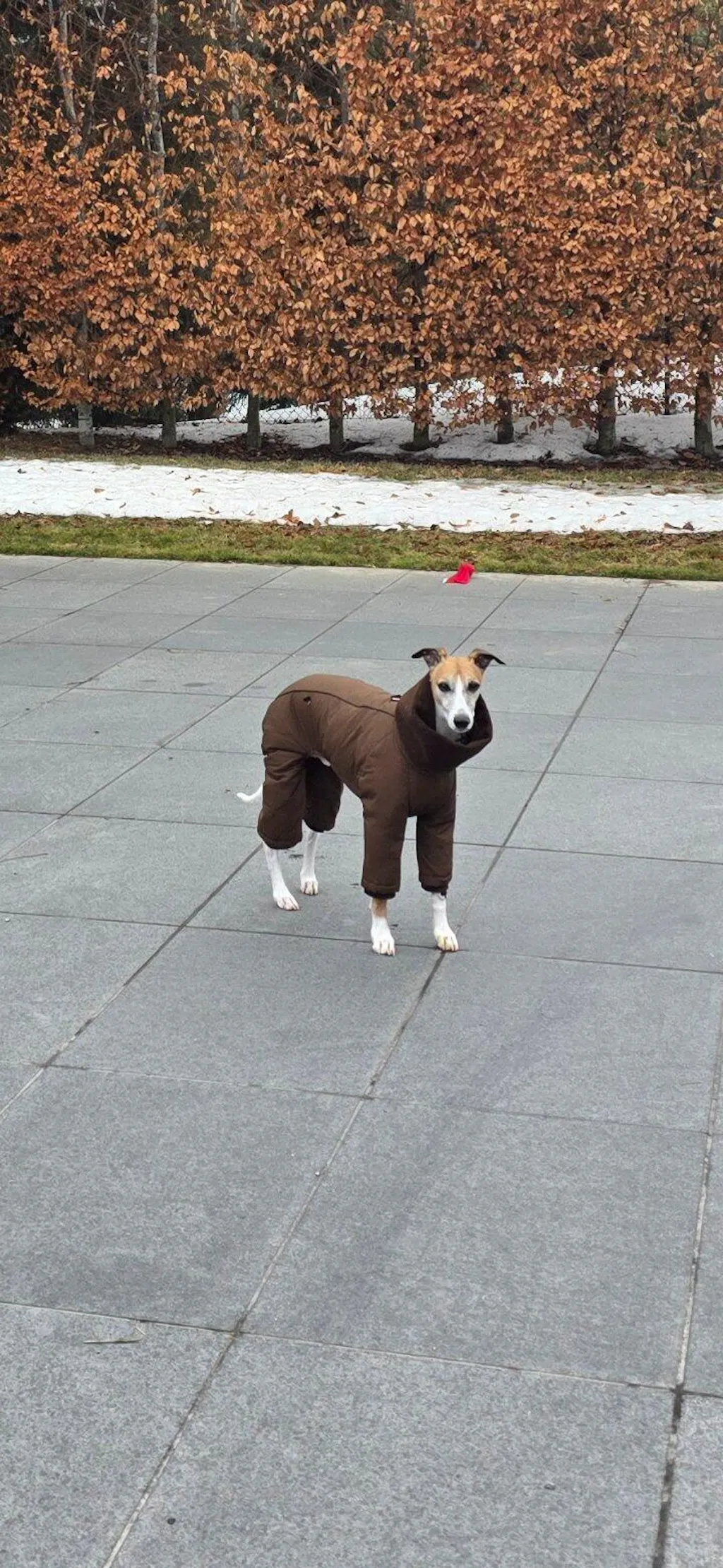 Sheri Munro This light down coat is perfect for the bridge month(s) transitioning from Winter to Spring in colder climates, like Ontario, Canada. They are well made and beautiful. The only detail I would change is having the removable neck attached with a zipper so it stays securely in place. Otherwise this is a perfect coat for Whippets. Our Whippets Slim and Sadie love their new coats.